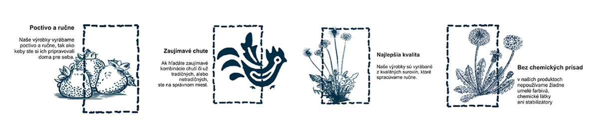 Webový obchod dýcha poctivou domácou atmosférou. Prispievajú k nej aj originálne vytvorené piktogramy odkazujúce priamo na výhody Sladkého košíka. V podobnom duchu bola navrhnutá aj „pečať kvality Sladký košík“.